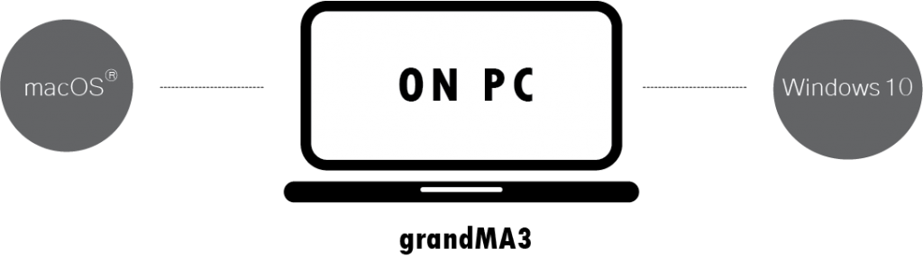 Hệ thống grandMA3 on PC là giải pháp hoàn hảo cho các sự kiện và dự án lắp đặt có chi phí vừa phải. Các tùy chọn khác nhau ở phần cứng kết hợp với phần mềm grandMA3 onPC tạo ra một nền tảng cho hệ thống điều khiển ánh sáng chính hãng: chỉ cần thêm màn hình và nó đã sẵn sàng hoạt động!