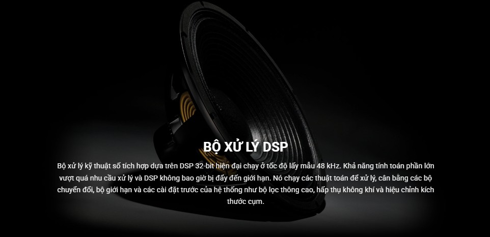 Bộ xử lý kỹ thuật số tích hợp dựa trên DSP 32-bit hiện đại chạy ở tốc độ lấy mẫu 48 kHz. Khả năng tính toán phần lớn vượt quá nhu cầu xử lý và DSP không bao giờ bị đẩy đến giới hạn. Nó chạy các thuật toán để xử lý, cân bằng các bộ chuyển đổi, bộ giới hạn và các cài đặt trước của hệ thống như bộ lọc thông cao, hấp thụ không khí và hiệu chỉnh kích thước cụm.
